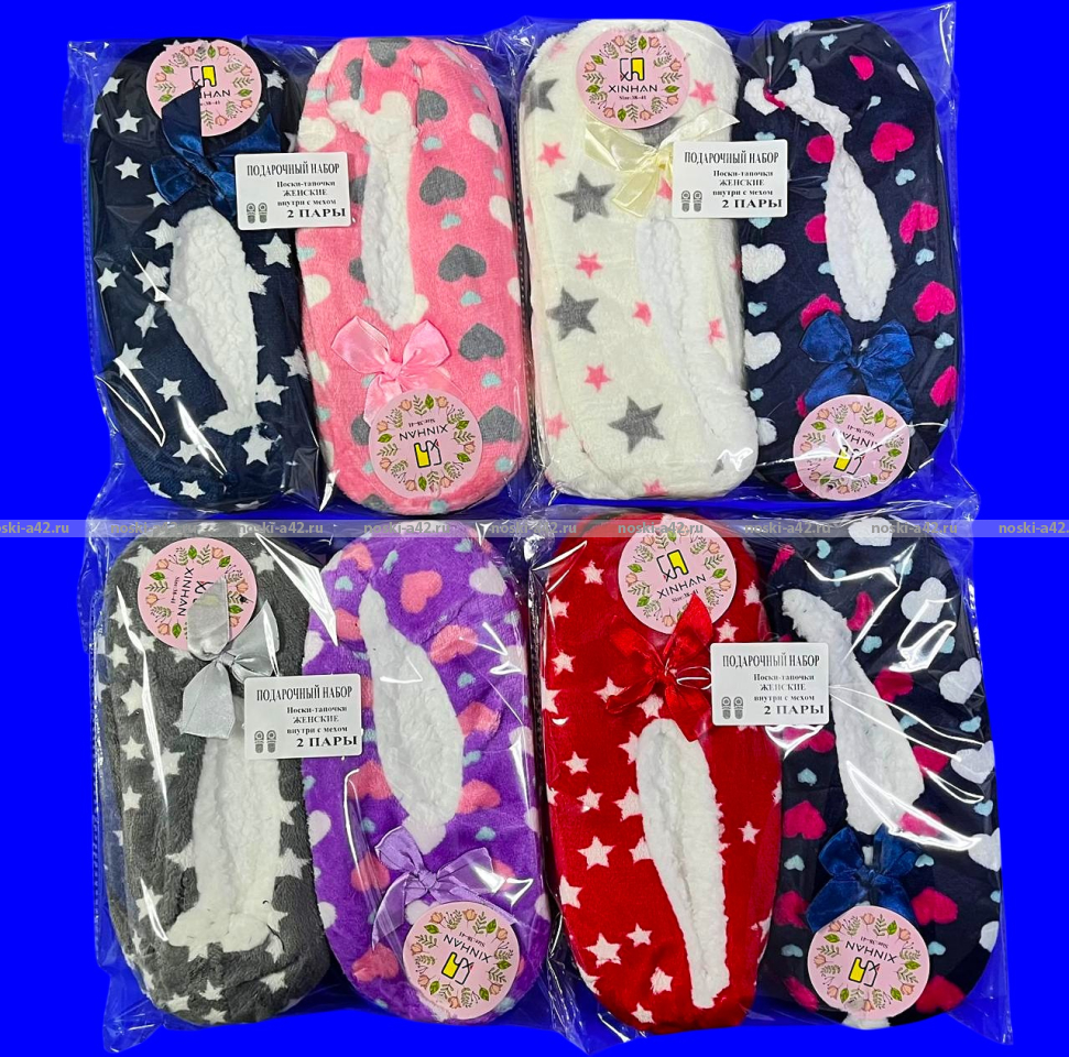 ПОДАРОЧНЫЙ НАБОР Носки-тапочки женские внутри с мехом оптом.