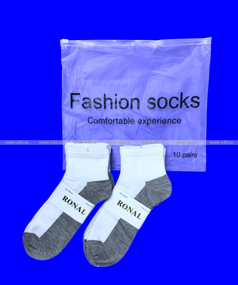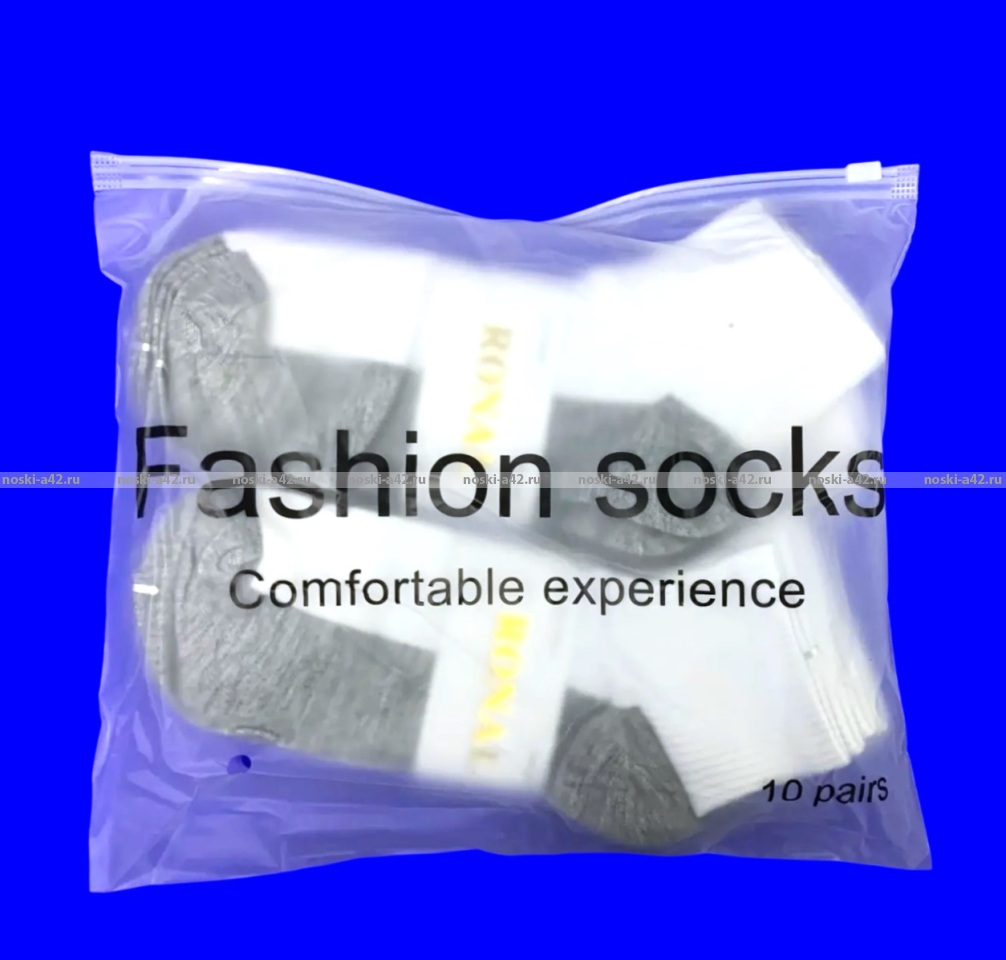 Белые носки с серой подошвой - каждые 10 пар (по 5 пар под одной общей этикеткой) упакованы в индивидуальный пакет с zip-застежкой.