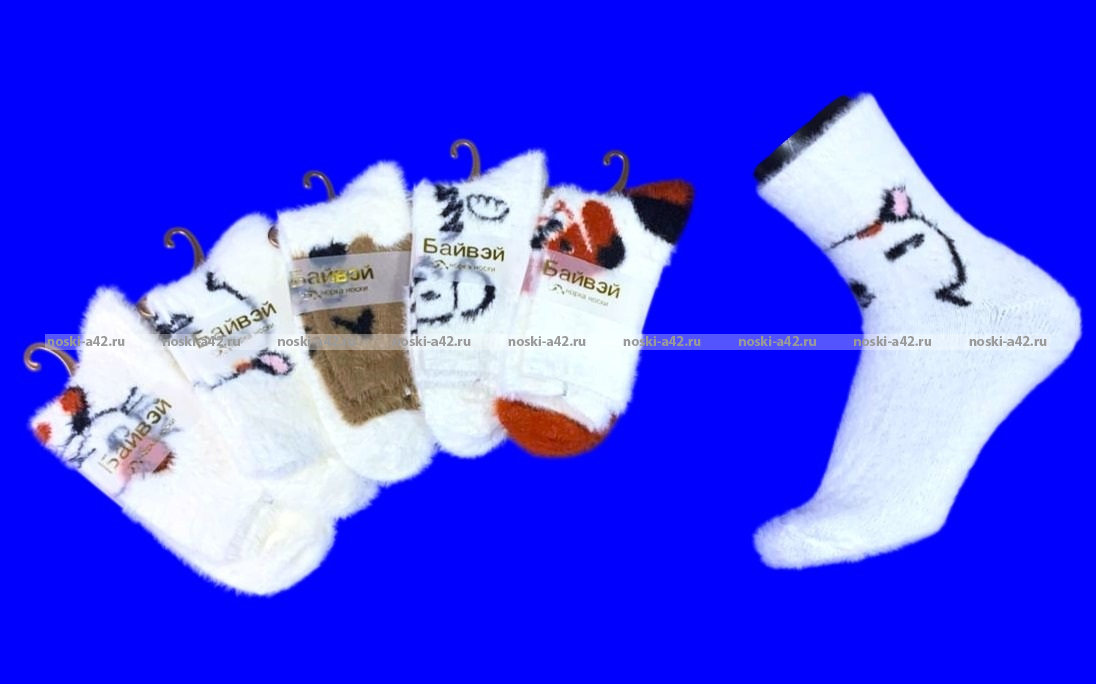 Байвей термоноски женские ангора НОРКА ШЕРСТЬ "Мордочки" арт. 3561 оптом.