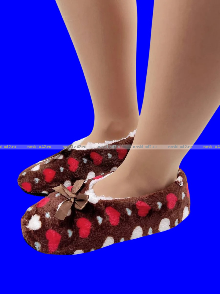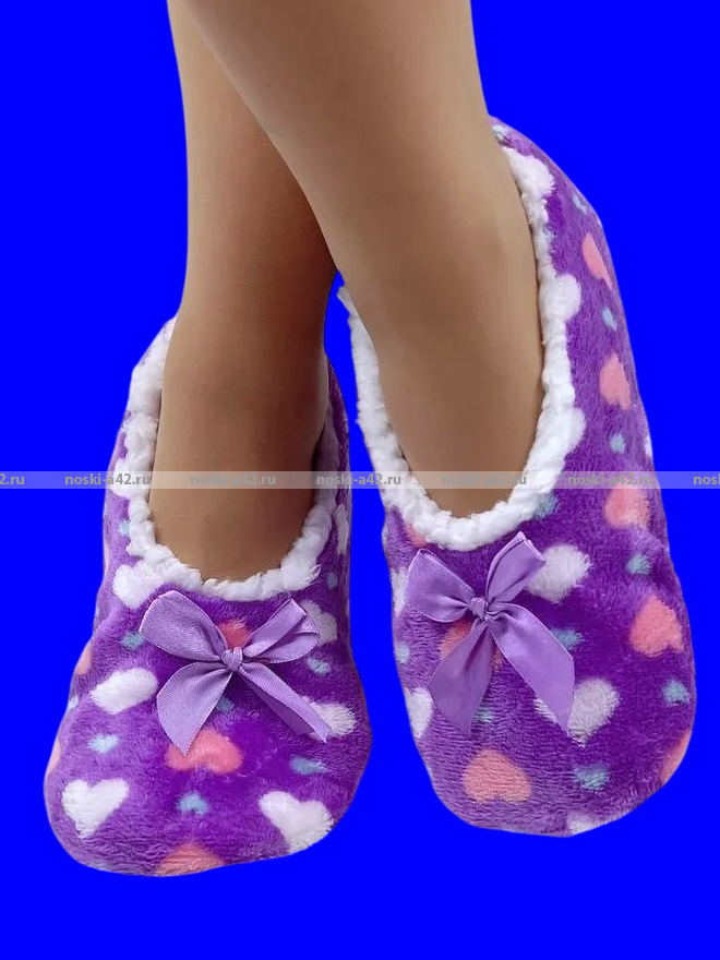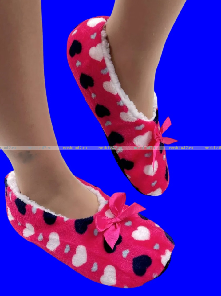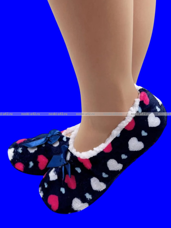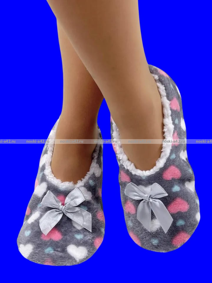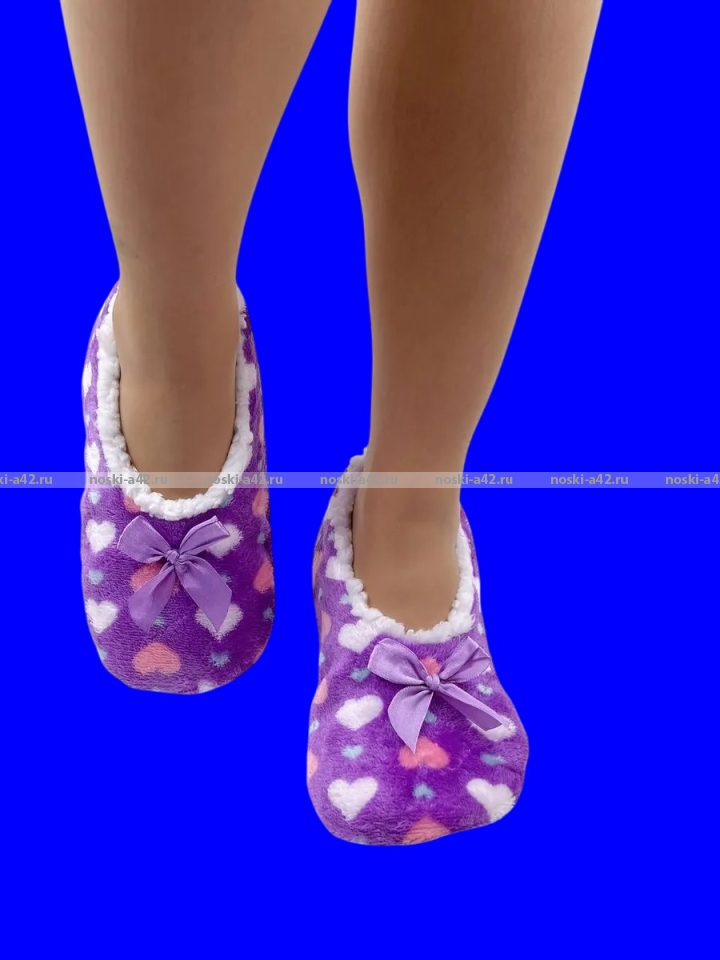 Носки-тапочки женские внутри с мехом "Сердечки" оптом.