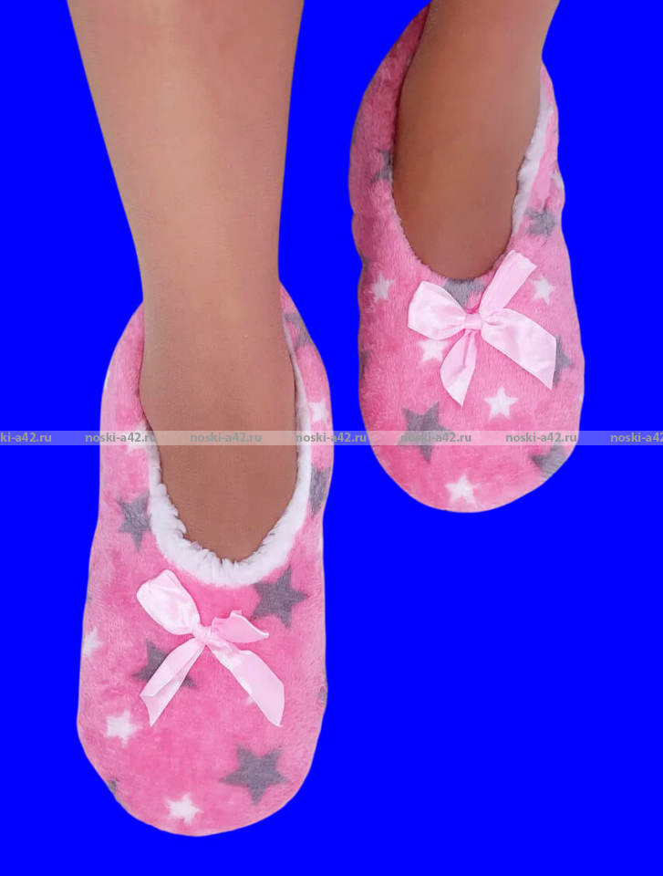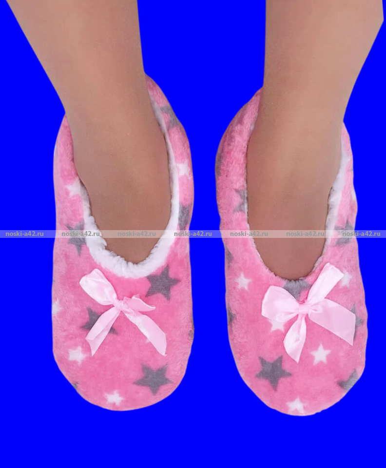 Носки-тапочки женские внутри с мехом "Звездочки" оптом.