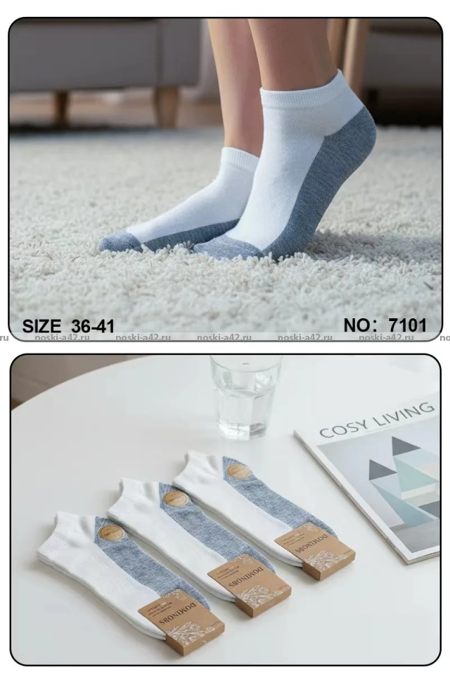 DOMINOBS носки женские укороченные белые (серая подошва) арт. 7101 оптом.