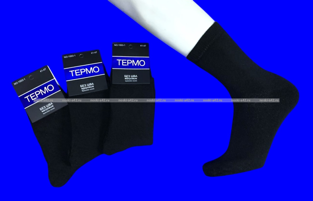 Теплые мужские носки - в упаковке 3 пары одного универсального размера черного цвета.