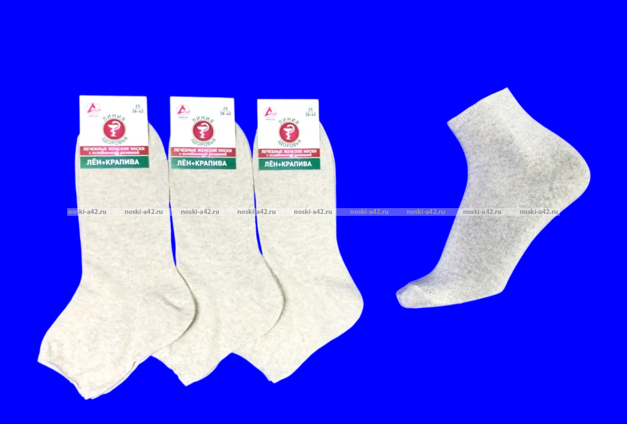 Линия здоровья носки женские лен с крапивой гладкие.