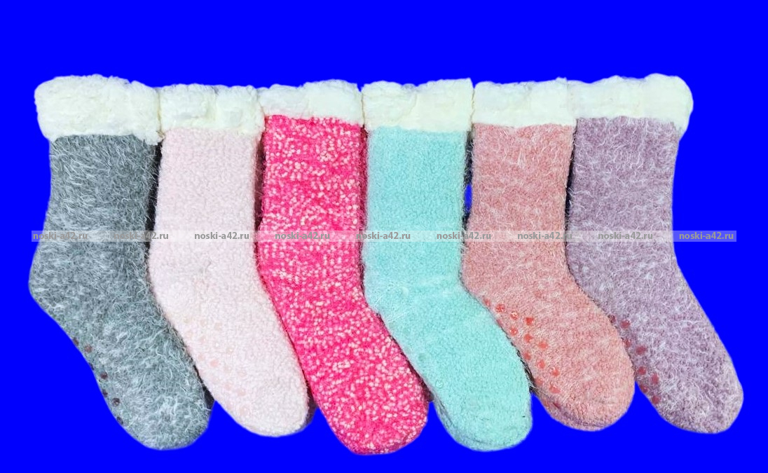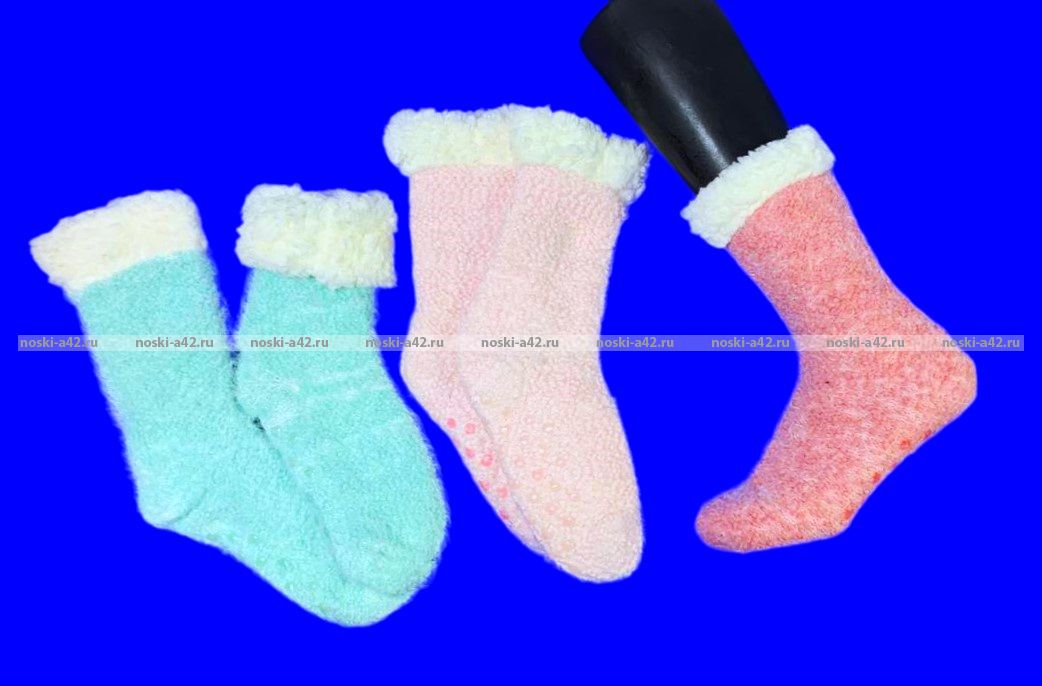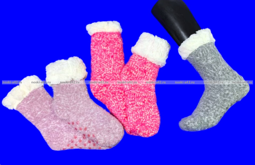 Теплые домашние носки с мягким мехом внутри, с нескользящими точками на следе.