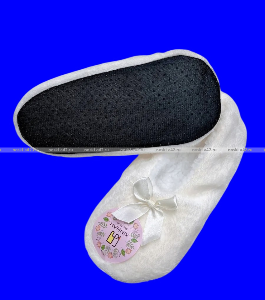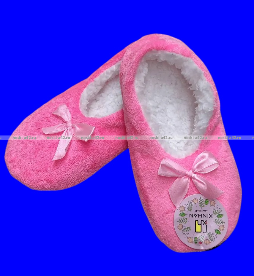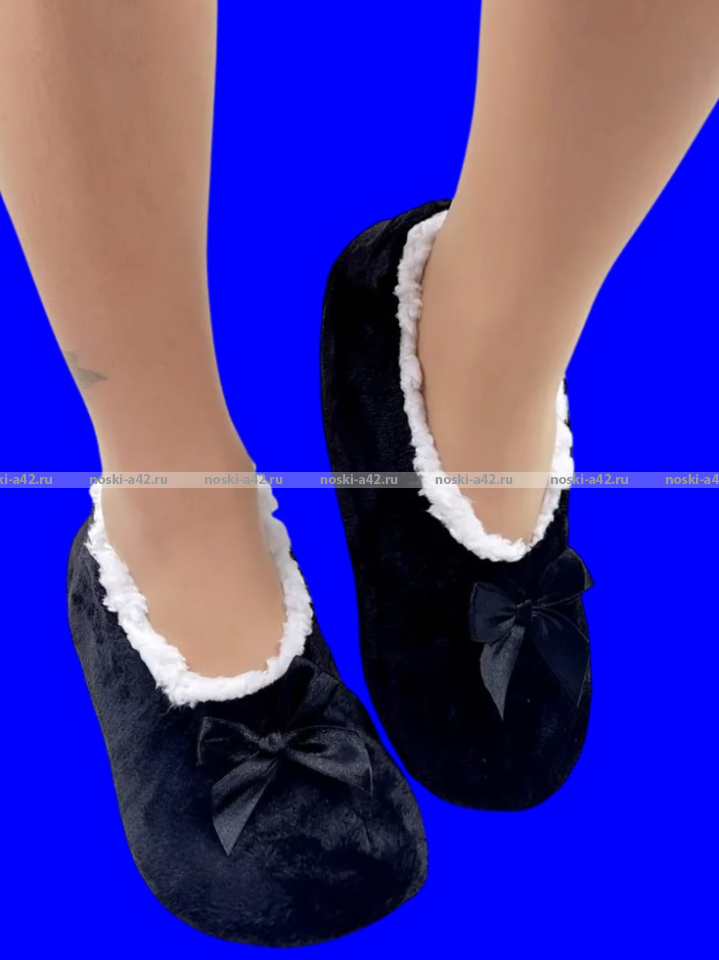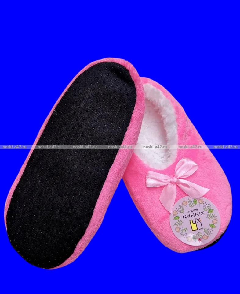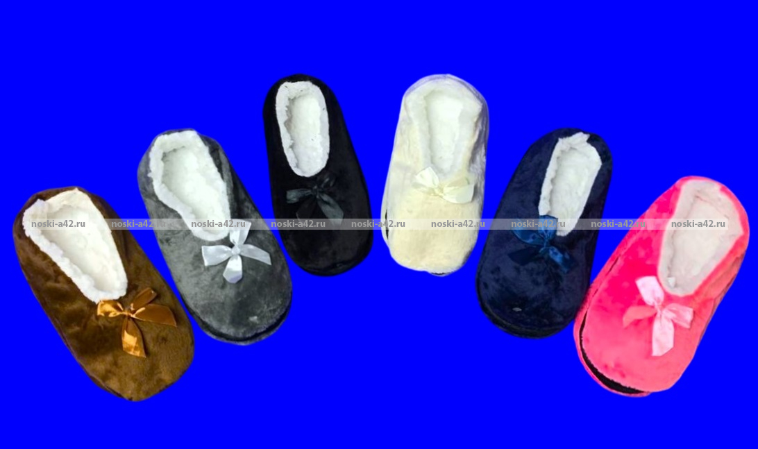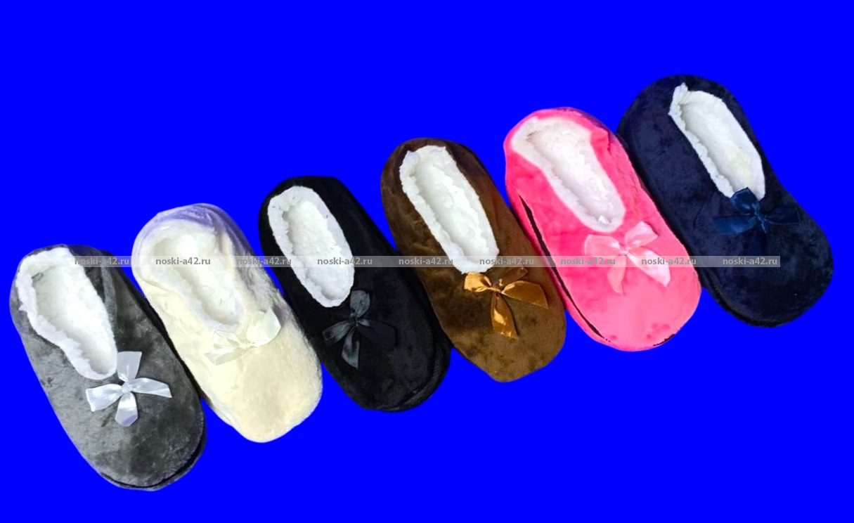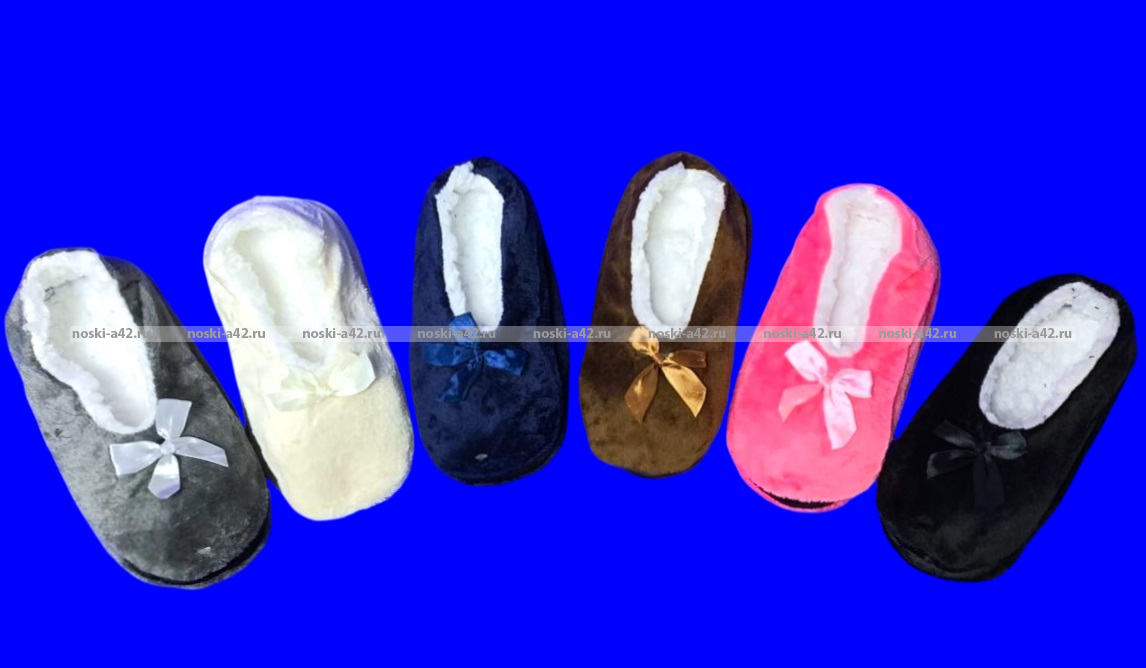 Носки-тапочки женские внутри с мехом однотонные оптом.