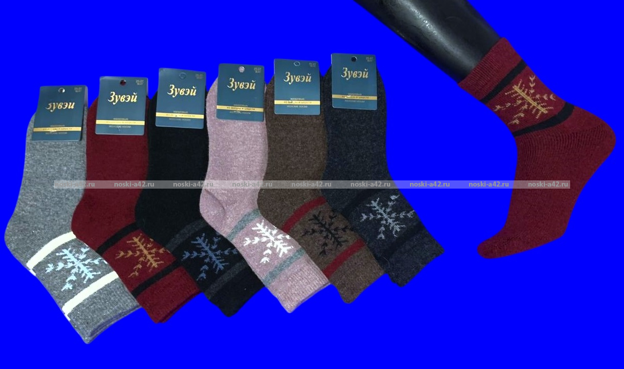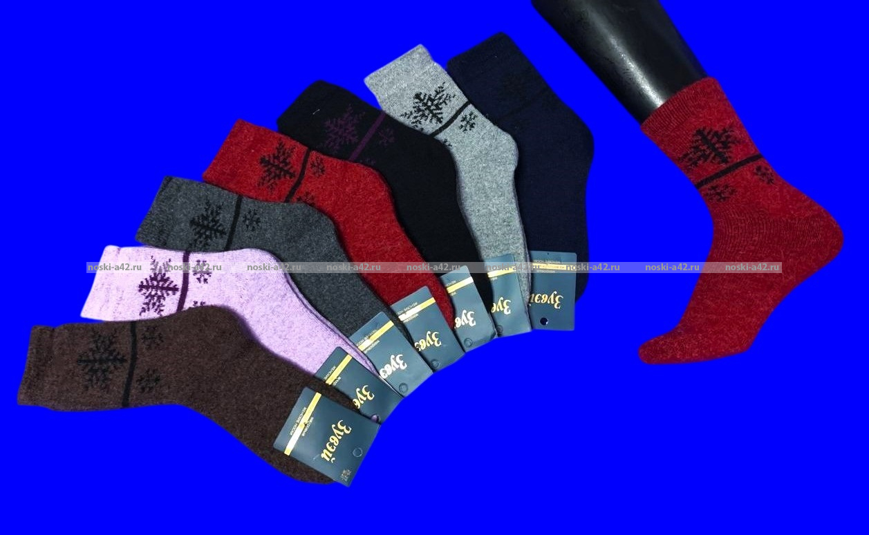 Зувей носки женские ангора внутри махра Снежинки оптом.